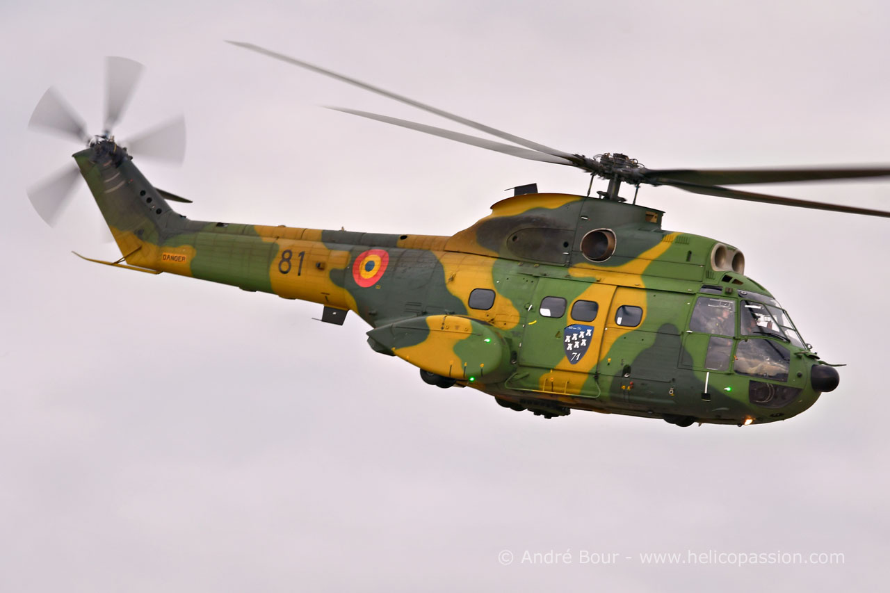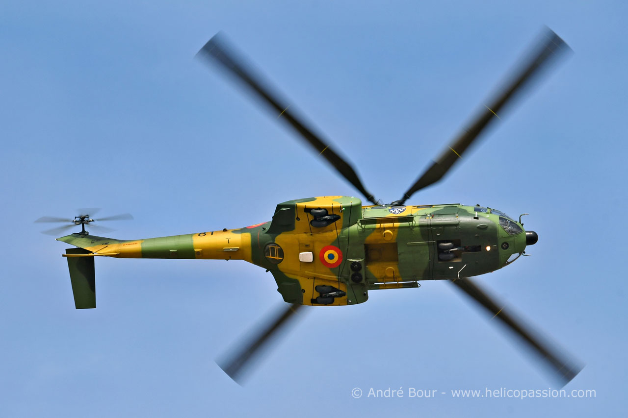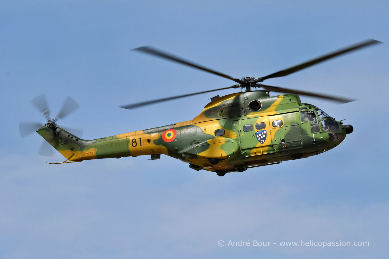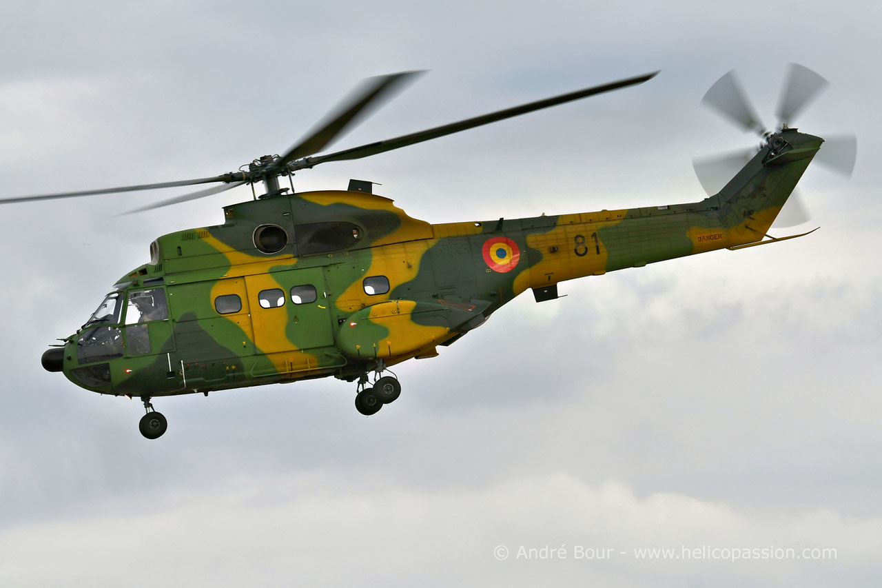 Les IAR330 sont des Puma construits par IAR en Roumanie. Sur les 104 IAR330L livrés, 25 ont été transformés en hélicoptères armées (IAR330L SOCAT) à partir de 1998 et 12 ont été modernisés en IAR330M avec une avionique équivalente mais sans armement entre 2005 et 2008. Ces configurations lisses (non armées) se distiguent par des gros réservoirs latéraux au-dessus des roues arrières et un radar à l'avant.