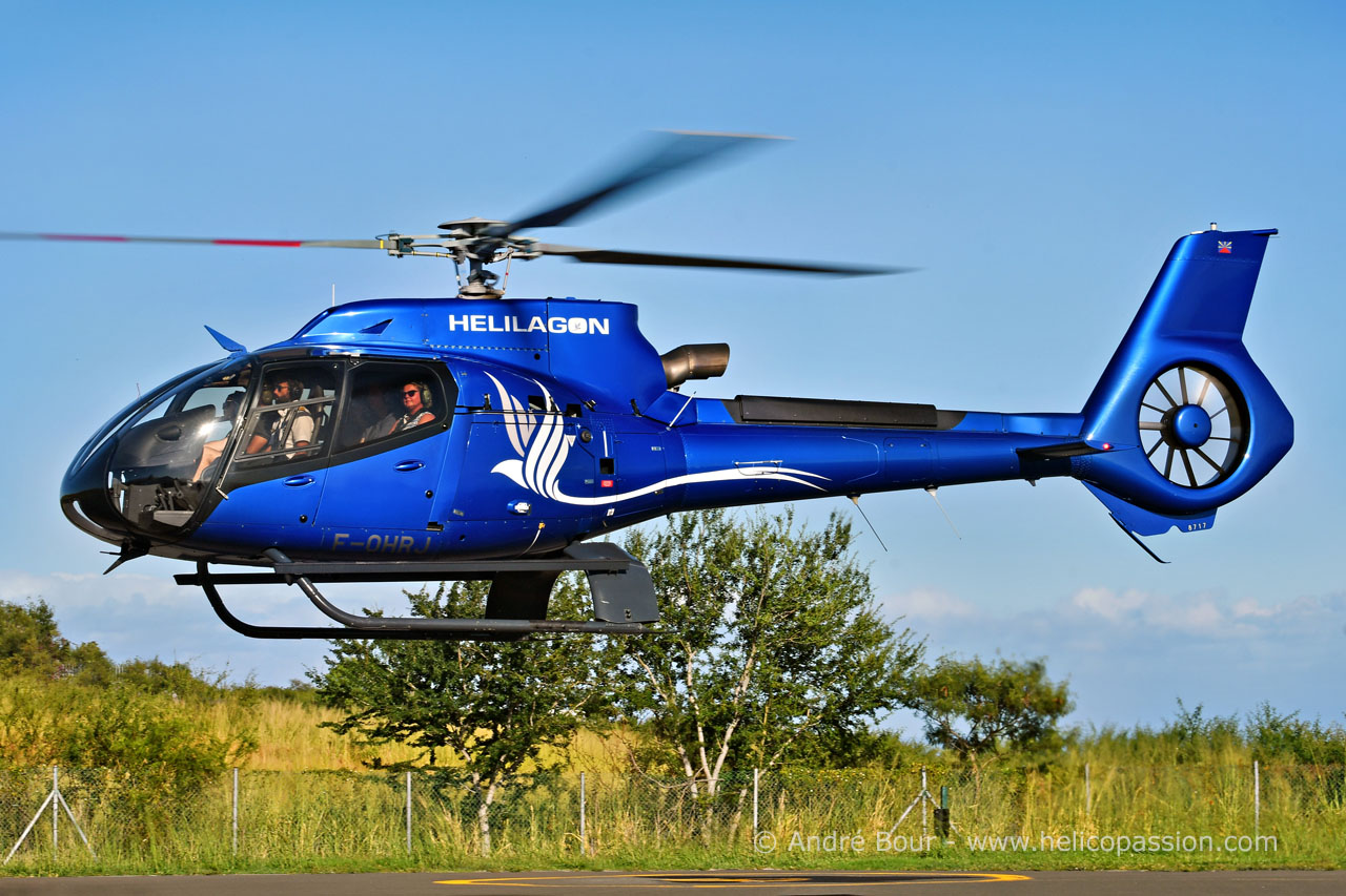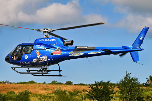 Tous les hélicoptères H130 d'HELILAGON portent une livrée bleue avec un dessin stylisé du Paille-en-queue, oiseau endémique de l'île de La Réunion