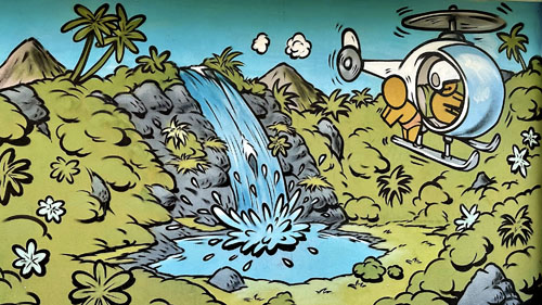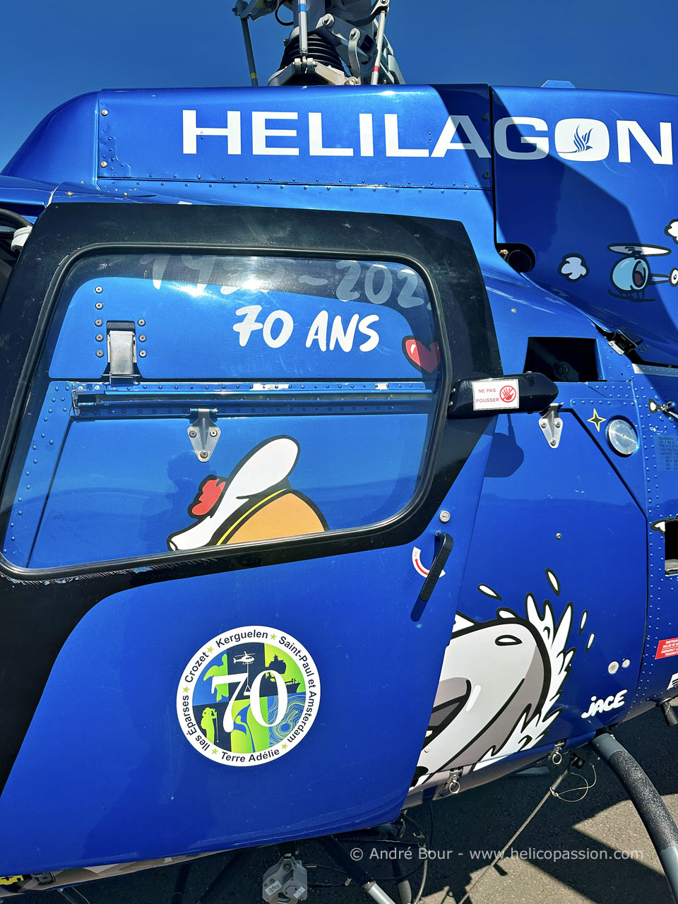 Hélicoptère AS350 B3 Ecureuil F-OKLG, décoré pour les 70 ans des TAAF (Terres australes et antarctiques françaises) par l'artiste Jace, créateur des Gouzous