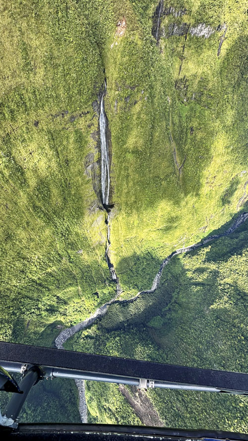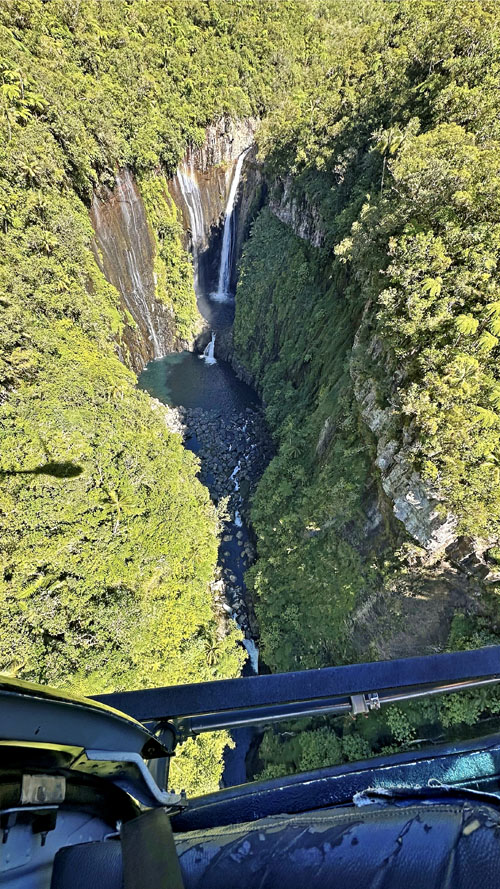 Vol en hélicoptère porte ouverte au-dessus des cascades de Takamaka et de la nouvelle route du littoral, à l'île de la Réunion avec HELILAGON, le 19 mai 2025