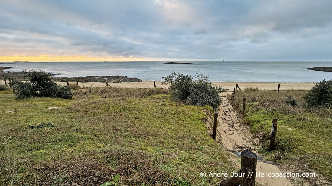 La plage de Kernevest à l’aube. Au large, les PHA Tonnerre (à gauche) et Mistral (à droite) se tiennent en position