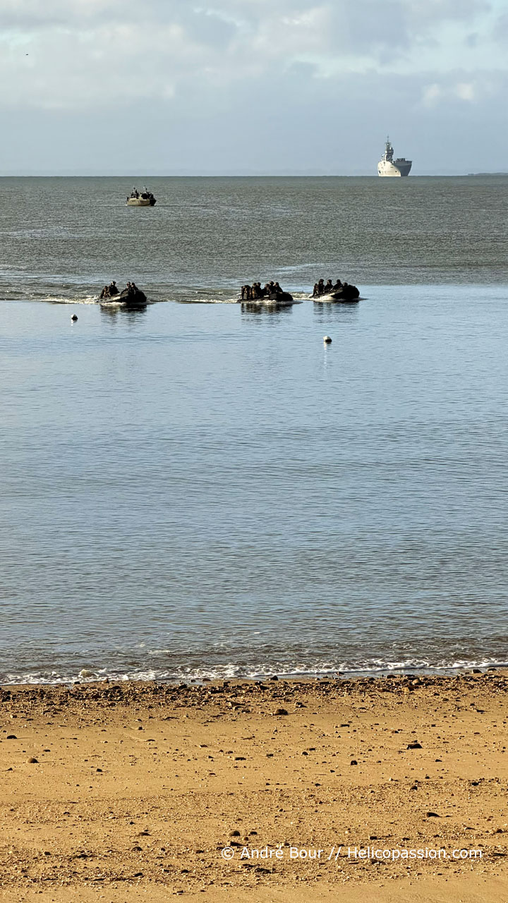 Une fois la reconnaissance menée et le périmètre sécurisé, le feu vert est donné : les rotations amphibies peuvent s’engager à pleine cadence.