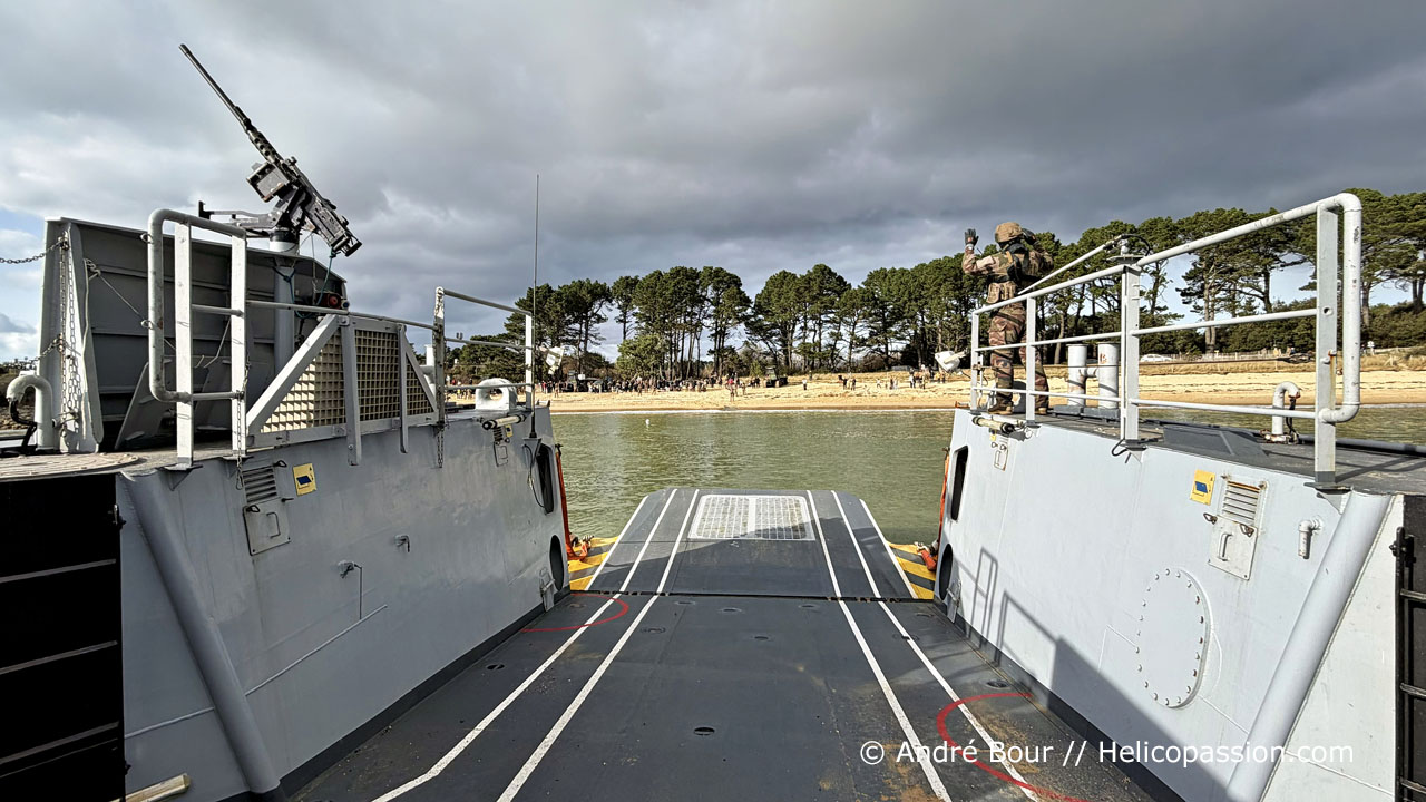 Accostage d’un EDAS lors d’une rotation depuis les PHA. Les premiers véhicules lourds rejoignent la tête de pont