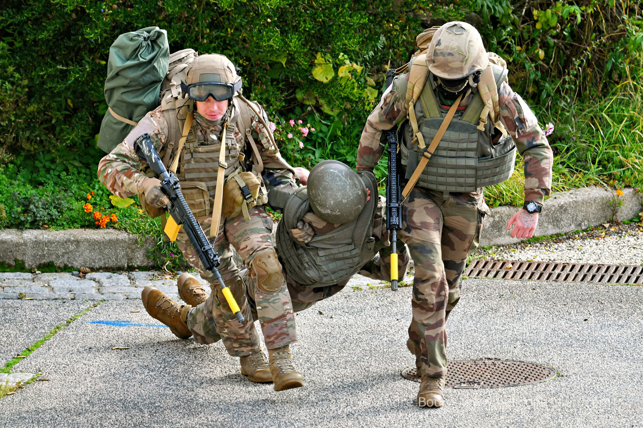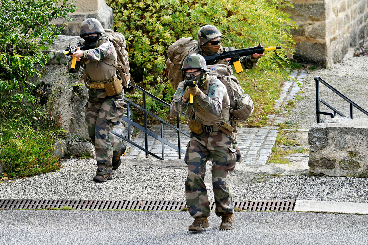 Progression des militaires dans le village de Connangles infiltré par les forces hostiles