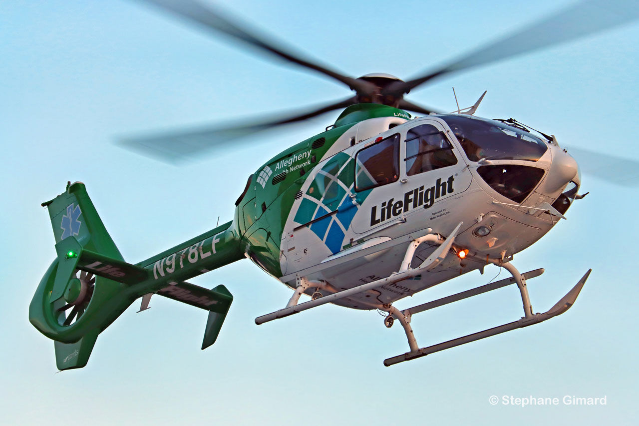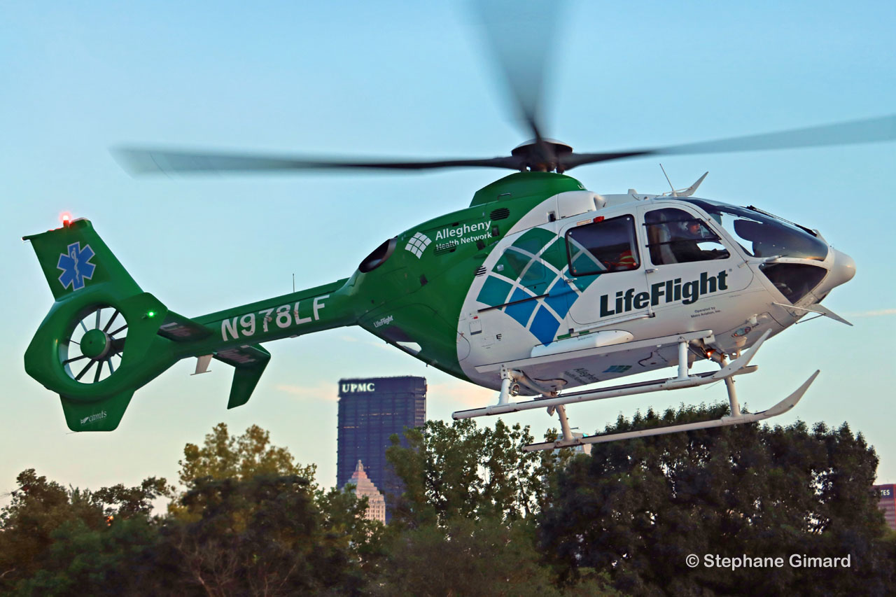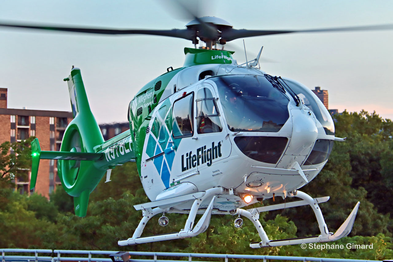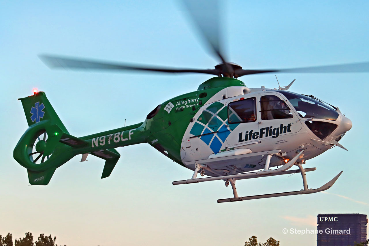 Le service LifeFlight de l'hôpital Allegheny assure des transports d'urgence régionaux par hélicoptère pour les patients gravement malades ou blessés nécessitant des soins spécialisés immédiats. LifeFlight est disponible 24h/24 et 7j/7. Les 6 hélicoptères - 5 EC145 et un EC135 - sont opérés par METRO AVIATION.