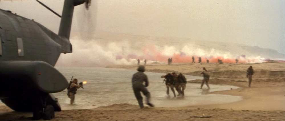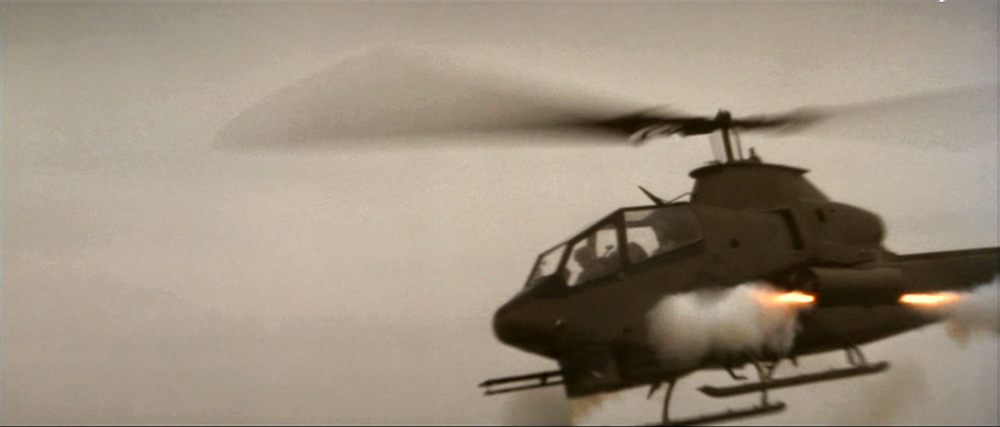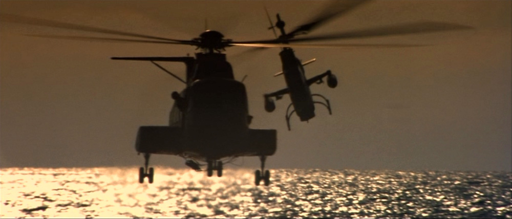 Une belle scène d'extraction d'un commando à la fin du film avec un CH53 Seastallion et un AH1F Cobra (dans un film sur les Navy SEALS, on aurait pu s'attendre à un AH1J, T ou W des Marines !)