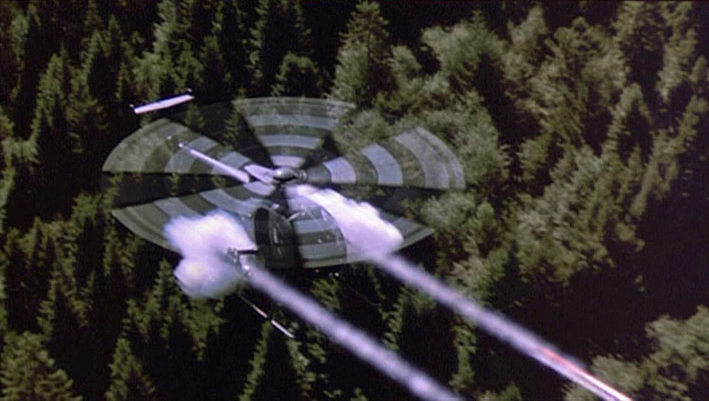 Dans Tonnerre de feu (1983), l'hélicoptère est la véritable star du film. Une Gazelle lourdement modifiée incarne un prototype futuriste de surveillance et d'attaque. Ses vols urbains au ras des immeubles et son duel final dans le ciel de Los Angeles en font l'un des premiers films où un hélicoptère occupe un rôle central, préfigurant la série Airwolf / Supercopter.