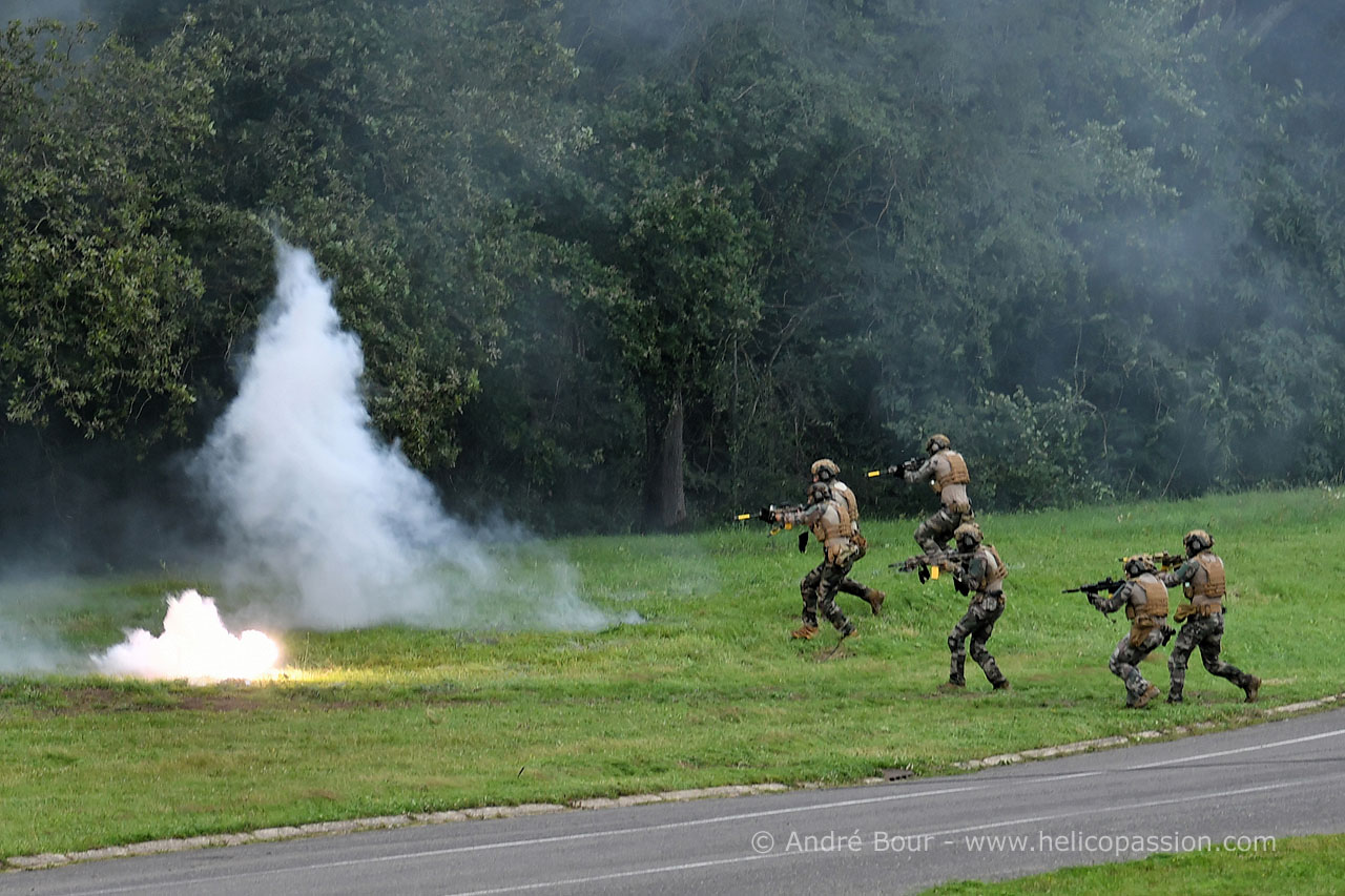 - Un assaut aéroterrestre combinant manoeuvre aéromobile avec des hélicoptères de l'ALAT (Aviation Légère de l'Armée de Terre) et manoeuvre au sol avec des véhicules blindés de l'Armée de Terre française ;