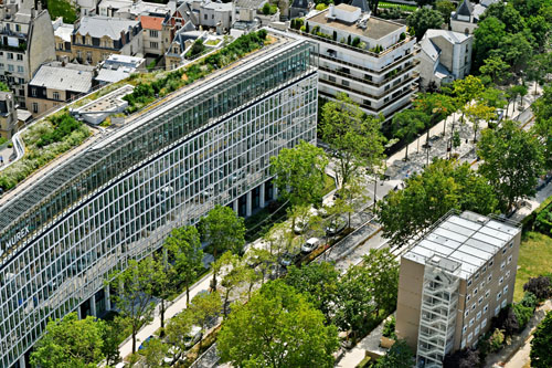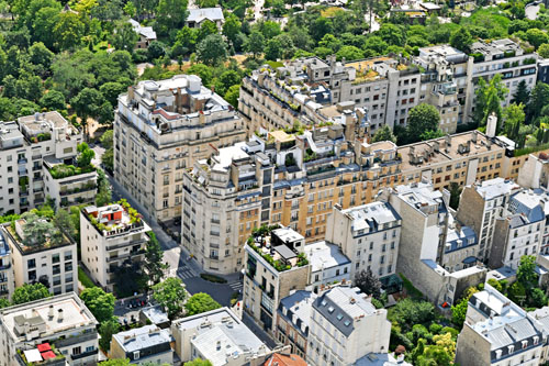 Au loin, de gauche à droite, La Défense, La Tour Eiffel et la Tour Montparnasse