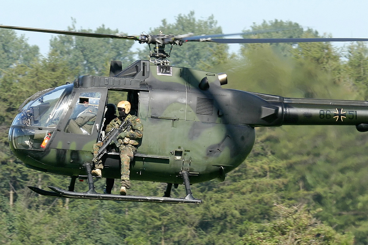 L'hélicoptère BO105 allemand, équivalent à la Gazelle de l'ALAT française. La version antichar, remplacée par le Tiger UHT, sera désarmée et restera en service comme hélicoptère de reconnaissance.