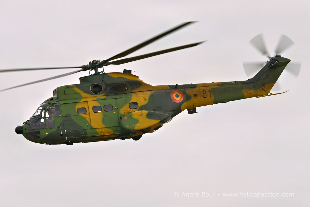 Les IAR330 sont des Puma construits par IAR en Roumanie. Sur les 104 IAR330L livrés, 25 ont été transformés en hélicoptères armées (IAR330L SOCAT) à partir de 1998 et 12 ont été modernisés en IAR330M avec une avionique équivalente mais sans armement entre 2005 et 2008. Ces configurations lisses (non armées) se distiguent par des gros réservoirs latéraux au-dessus des roues arrières et un radar à l'avant.