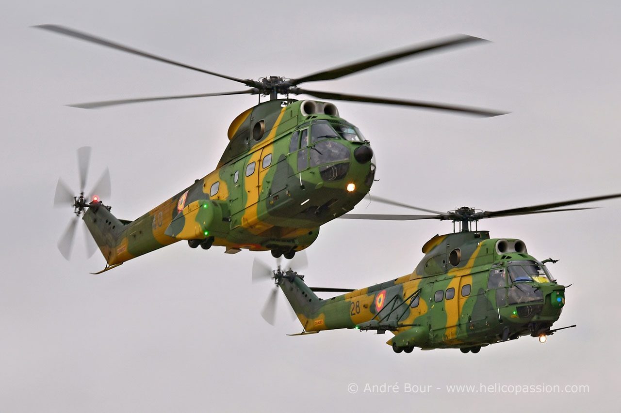 Hélicoptères IAR330M (à gauche) et IAR330L SOCAT (à droite)