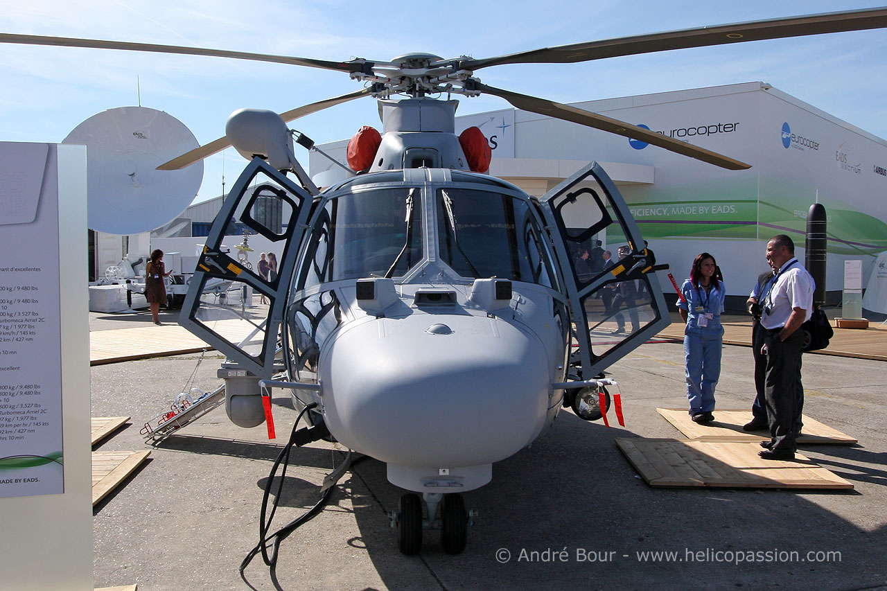 L'hélicoptère Eurocopter EC565 MB Panther est un bimoteur de 4 tonnes. La version militaire du Dauphin remplit les missions de recherche et de sauvetage et des activités de surveillance maritime. Il peut aussi servir à lutter contre la piraterie. La Bulgarie, à qui est destiné le modèle exposé, a récemment opté pour cet appareil afin de moderniser sa flotte et de remplir les standards de l'Otan