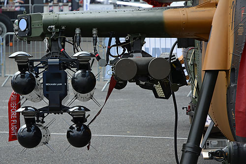 Détail de l'armement sous l'aileron d'emport droit : 4 missiles guidés antichar et 2 missiles air-air