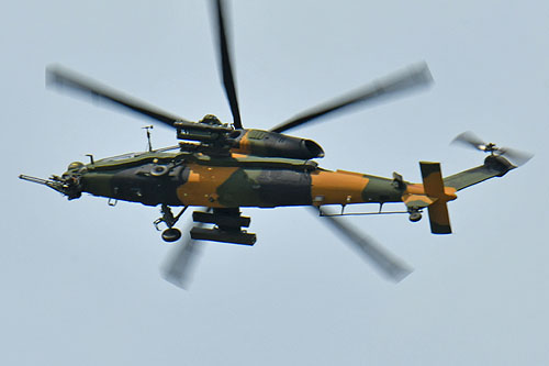 L'hélicoptère d'attaque T129 Atak de l'armée turque en vol au Salon aéronautique du Bourget (Paris Air Show) 2019