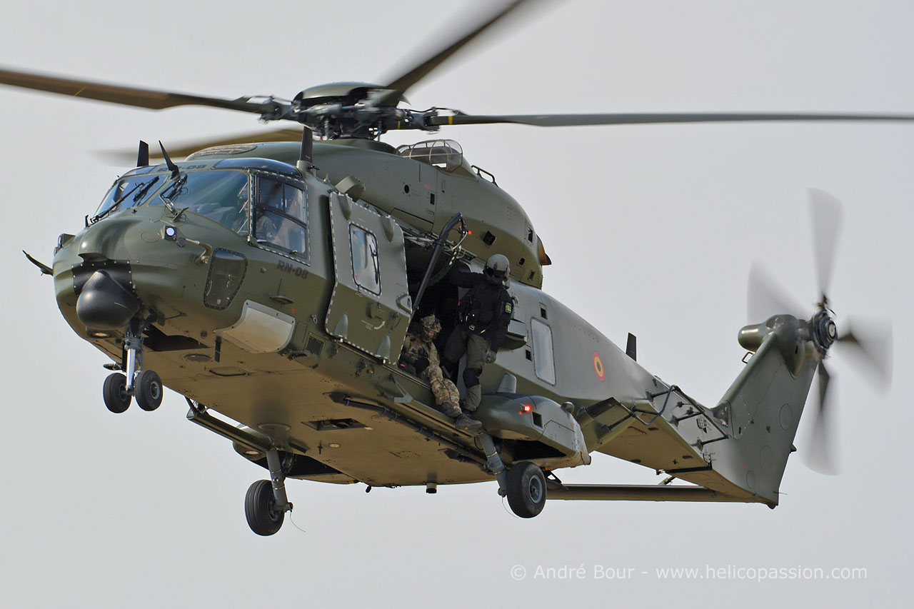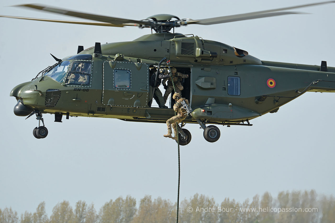 Les photos de cette page proviennent d'une démonstration qui reconstituait la dépose dans un environnement considéré comme hostile de membres des forces spéciales depuis un hélicoptère de transport NH90, sous la protection d'un hélicoptère d'attaque AH64 Apache américain et d'un AW109 belge armé de mitrailleuses de porte dans une formation multinationale appelée "Composite Air Operations" (COMAO). Cette démonstration a été présentée à plusieurs reprises les 11 et 12 avril 2017, avec le NH90 RN-06 ou avec le NH90 RN-08.