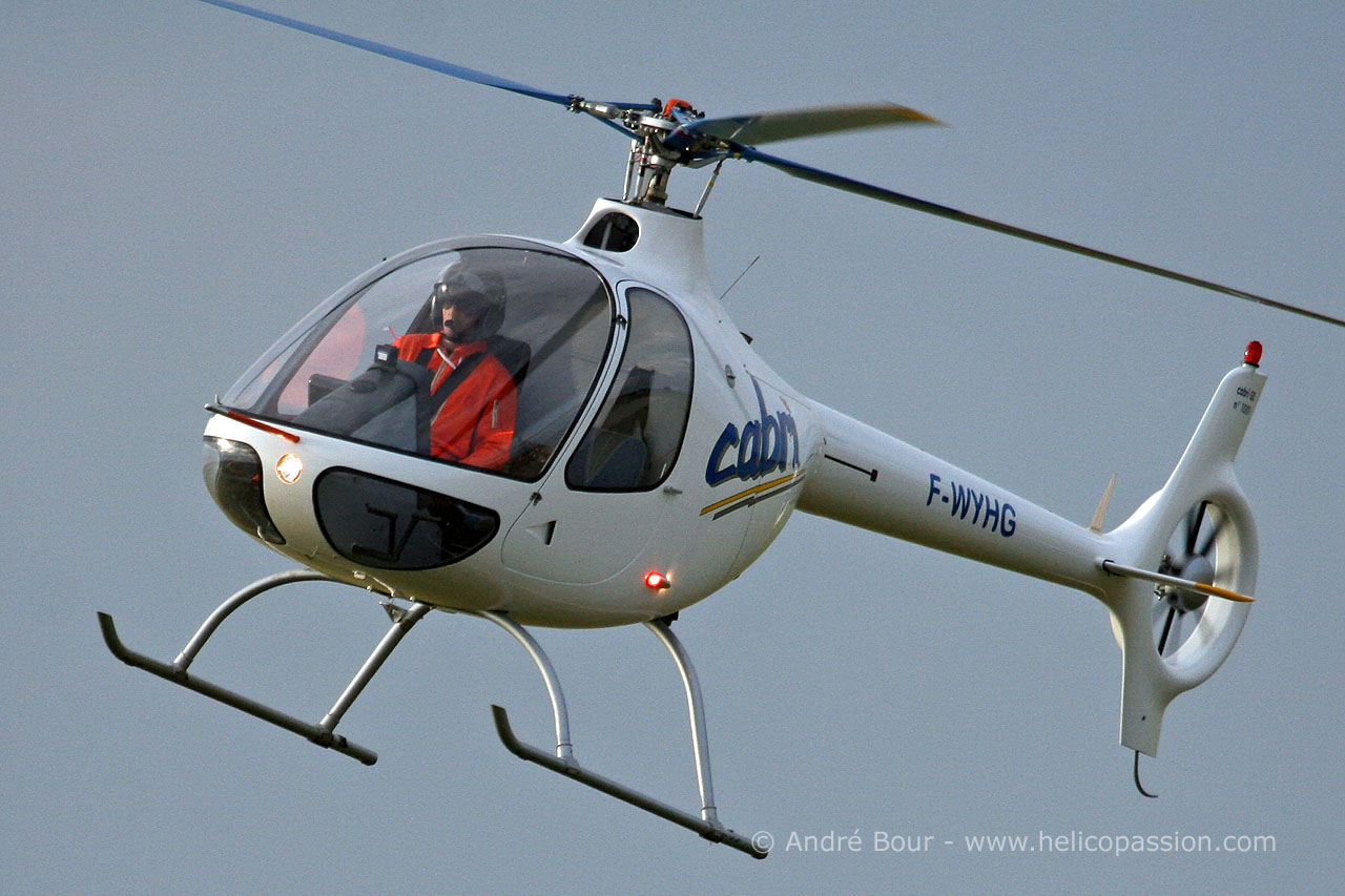(Photo André BOUR - HELICOPASSION) Première présentation en vol de l'hélicoptère Cabri G2 en vol. Bruno GUIMBAL fondateur d'HELICOPTERES GUIMBAL en 2000, était auparavant ingénieur chez EUROCOPTER depuis 1982