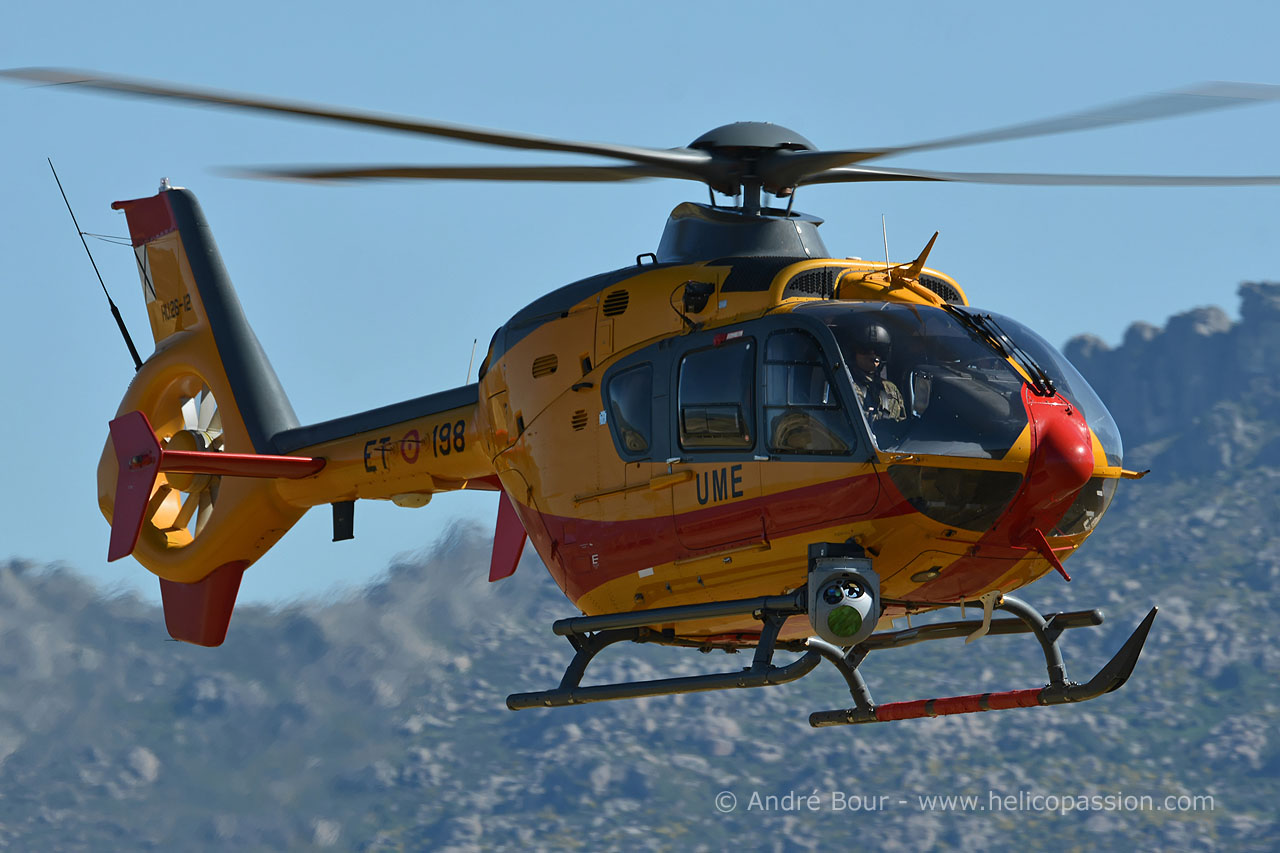 Hélicoptère EC135 ET198 de l'Unidad Militar de Emergencias (UME), notez la boule d'observation à l'avant