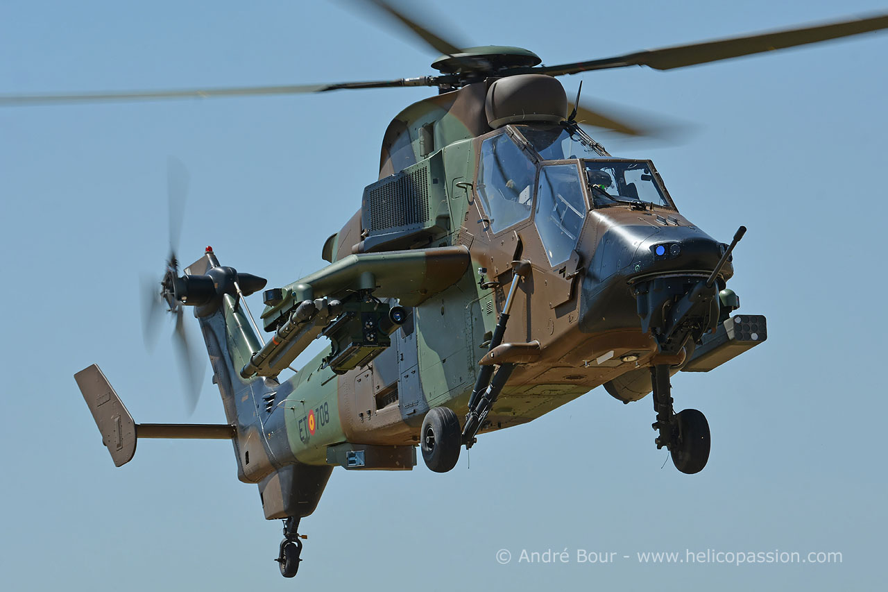Hélicoptère d'attaque Tigre ET702 de l'Armée de Terre espagnole (FAMET) uniquement armé de pod roquettes