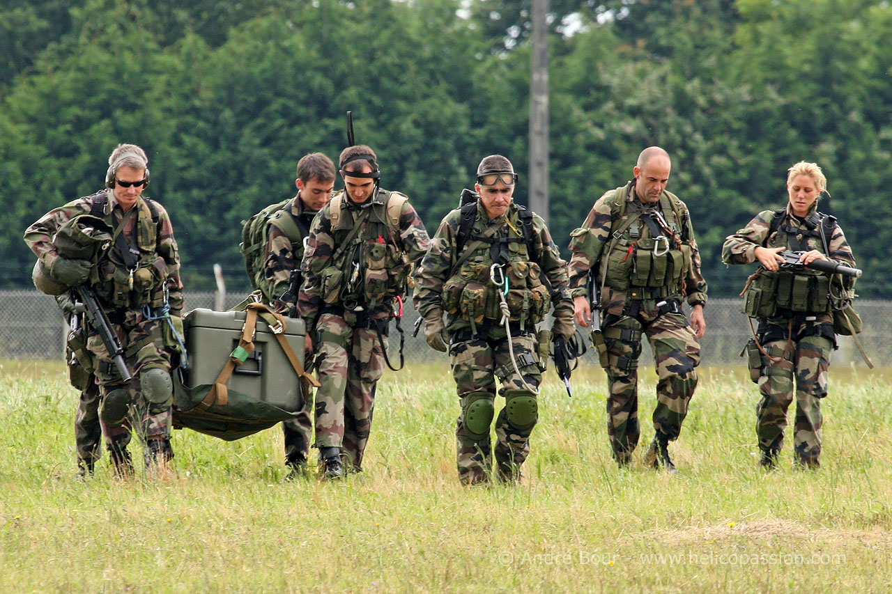 Les commandos déchargent les différents cordages de l'hélicoptère