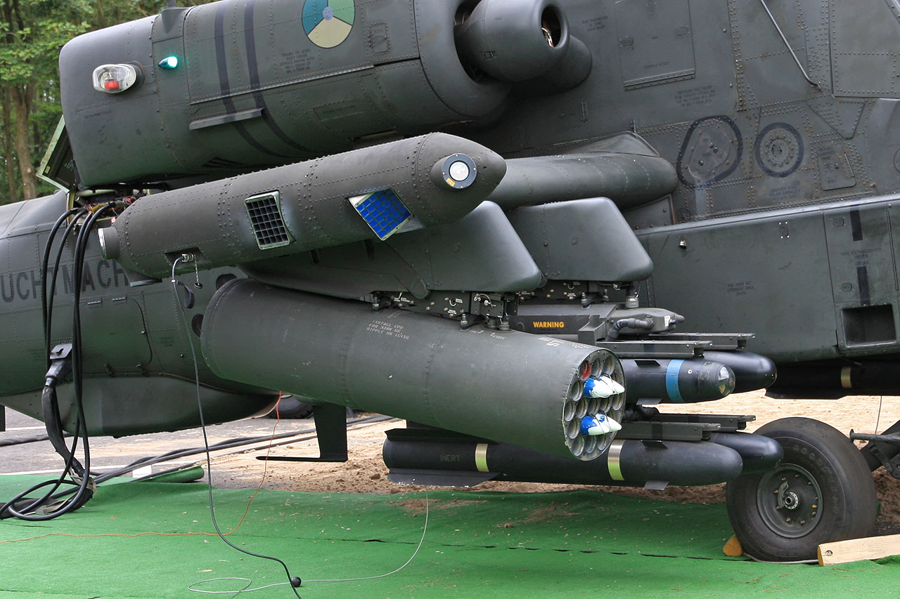 (Photo André BOUR - HELICOPASSION) Mise en place des missiles Hellfire