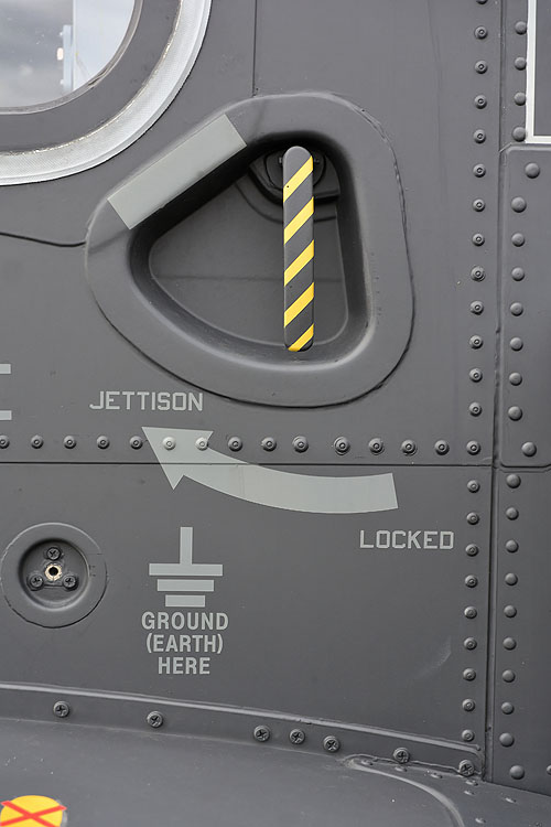 Notez le cordon rouge pour le canot de sauvetage en cas d'amerrissage