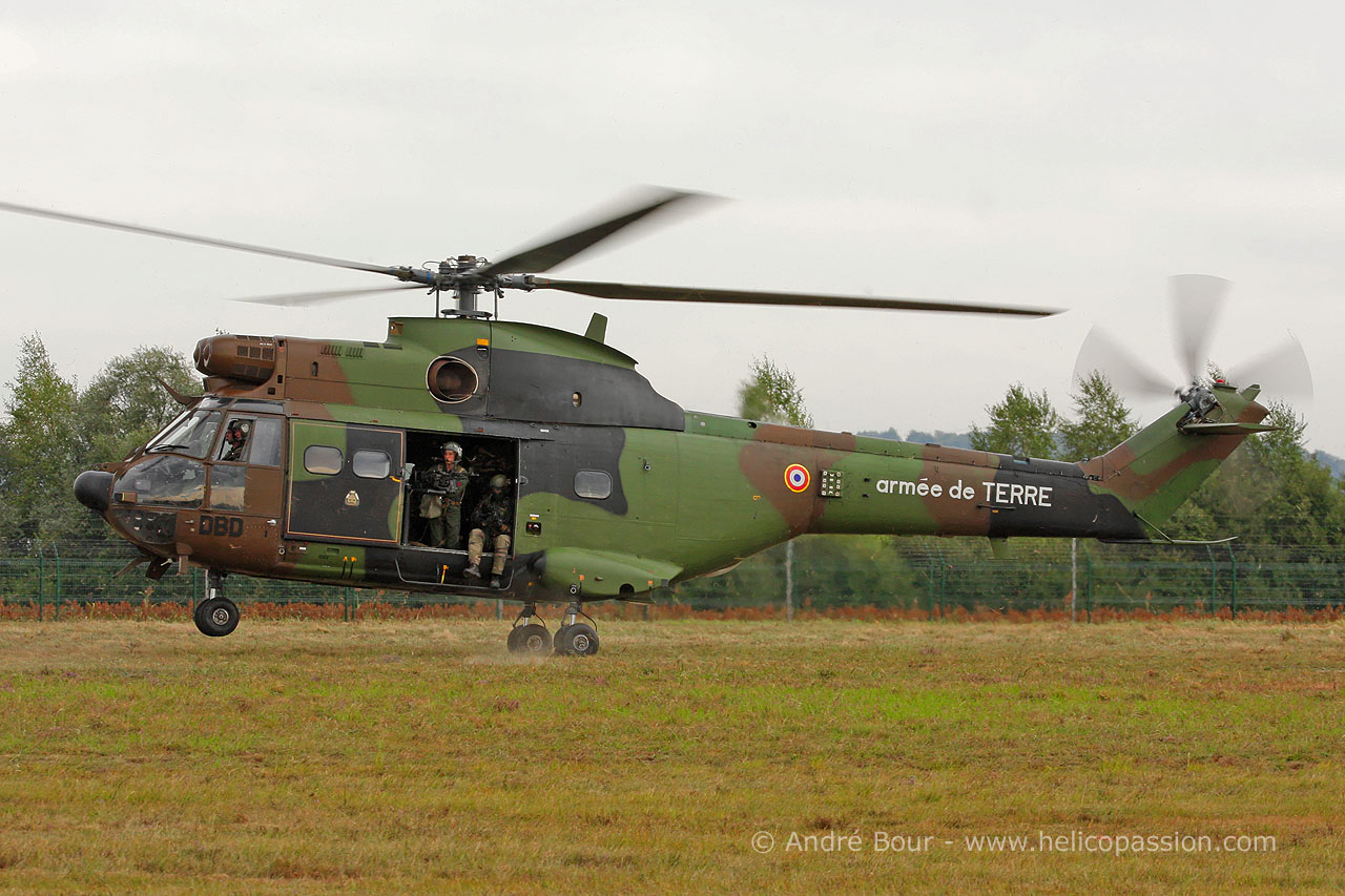 Un hélicoptère Puma arrive sur zone avec des commandos à bord