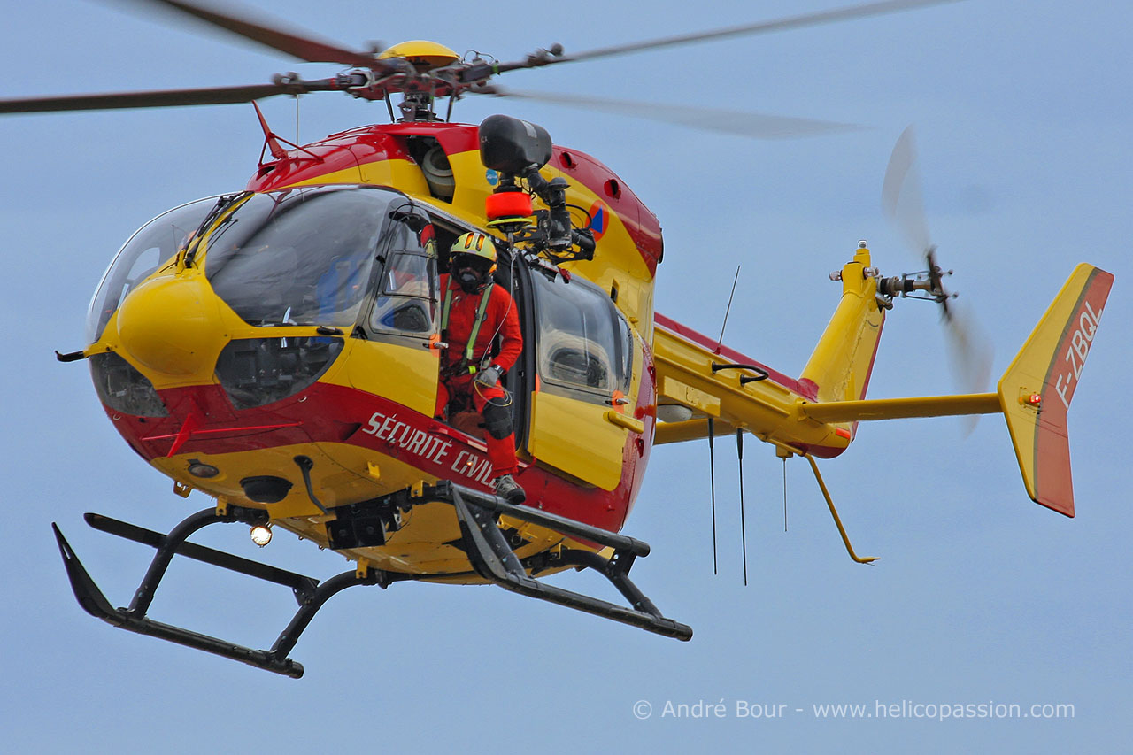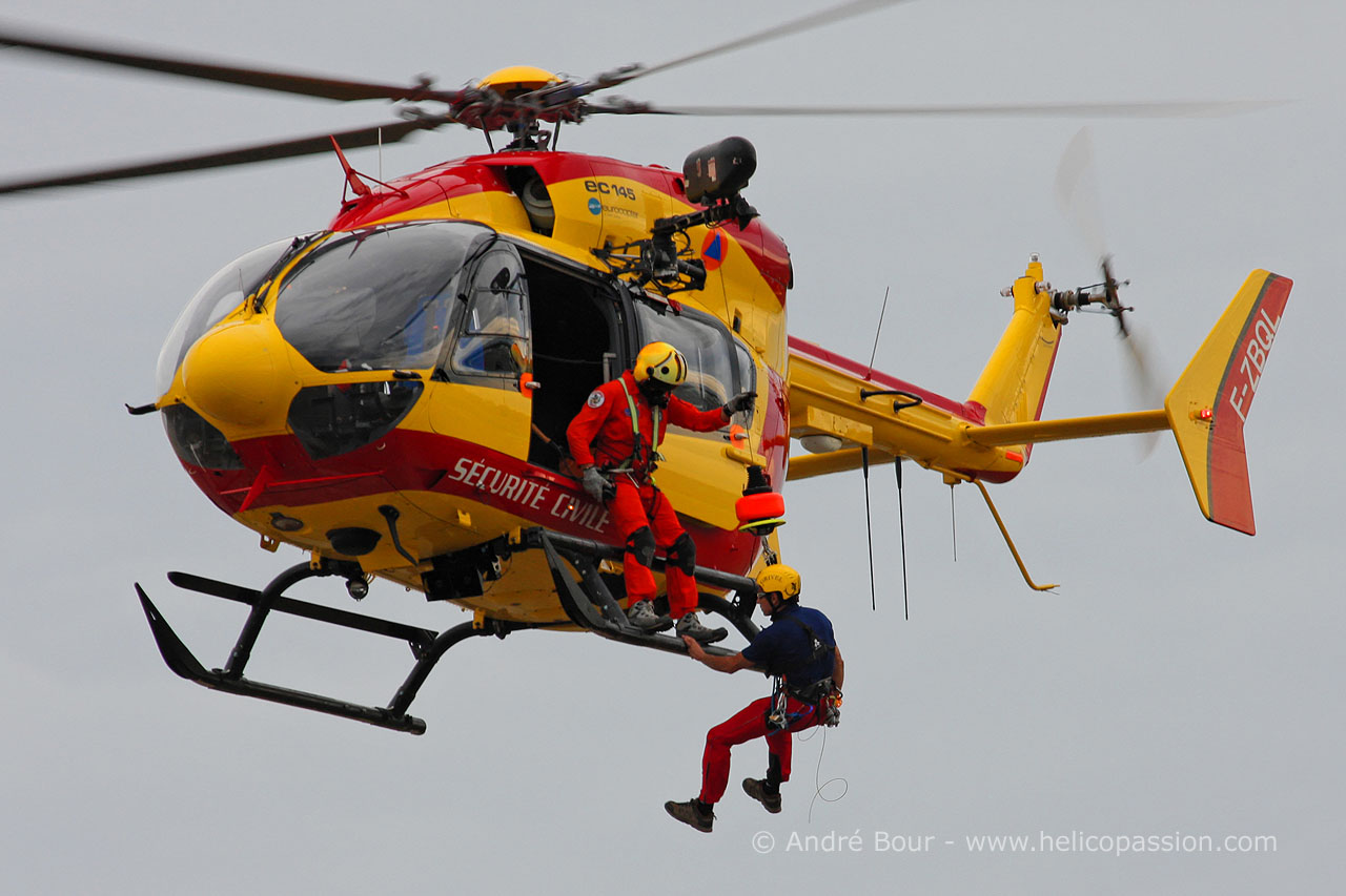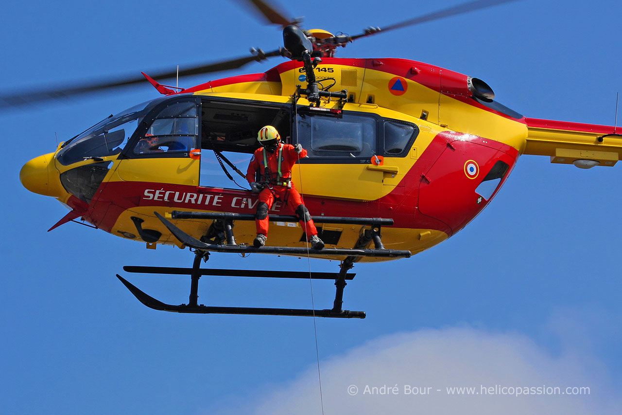 L'EC145 revient sur zone pour récupérer le sauveteur et la victime