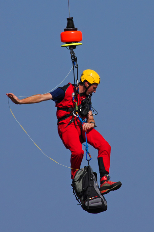 Le sauveteur est hélitreuillé vers la victime de l'accident
