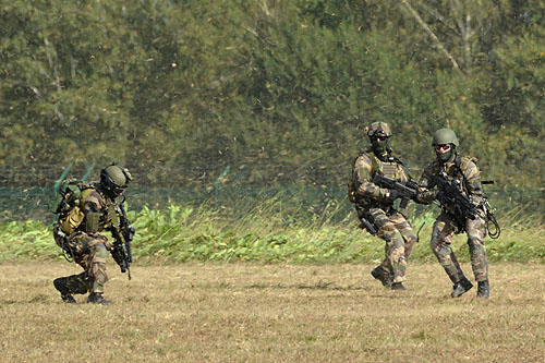 Après l'exfiltration en grappe, le Caracal repose les hommes au sol