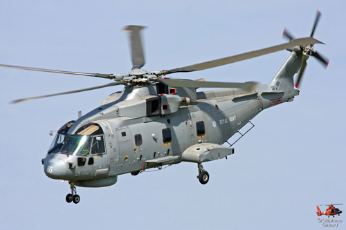L'hélicoptère de transport EH101 Merlin HM1 de la Marine anglaise. C'est principalement un hélicoptère de lutte anti-sous-marins, mais il peut aussi intervenir sur des missions de recherche et sauvetage, de lutte contre le piratage en mer, de lutte contre les narco-traficants. Depuis leur mise en service en 1997, les Merlin ont été engagés dans de nombreuses opérations, dont l'Afghanistan