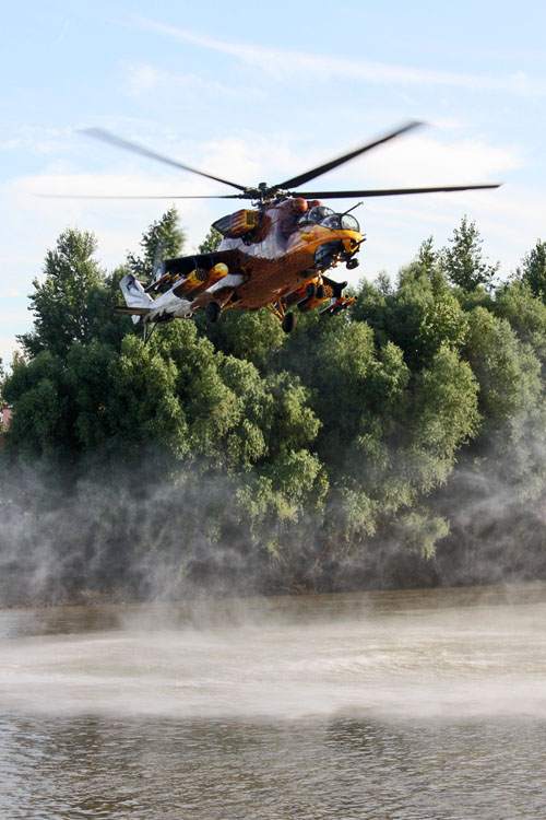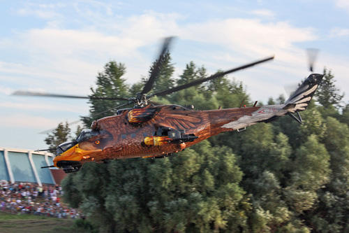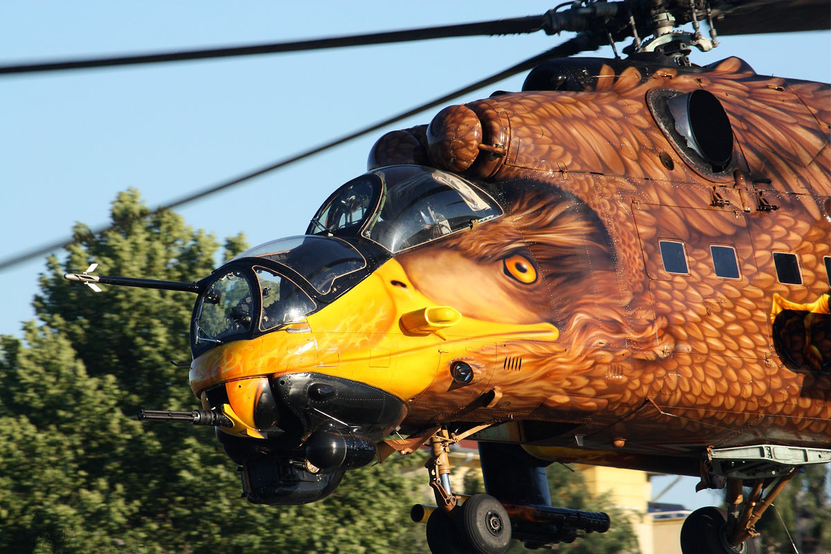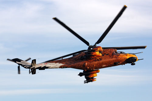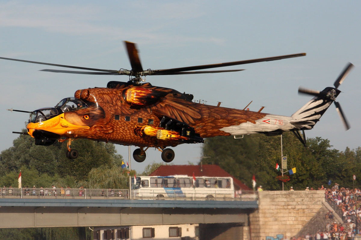 (Photo Gyula RACZ) Hélicoptère d'attaque MI24 Hind D hongrois, avec un beau camouflage sous l'apparence d'un aigle royal