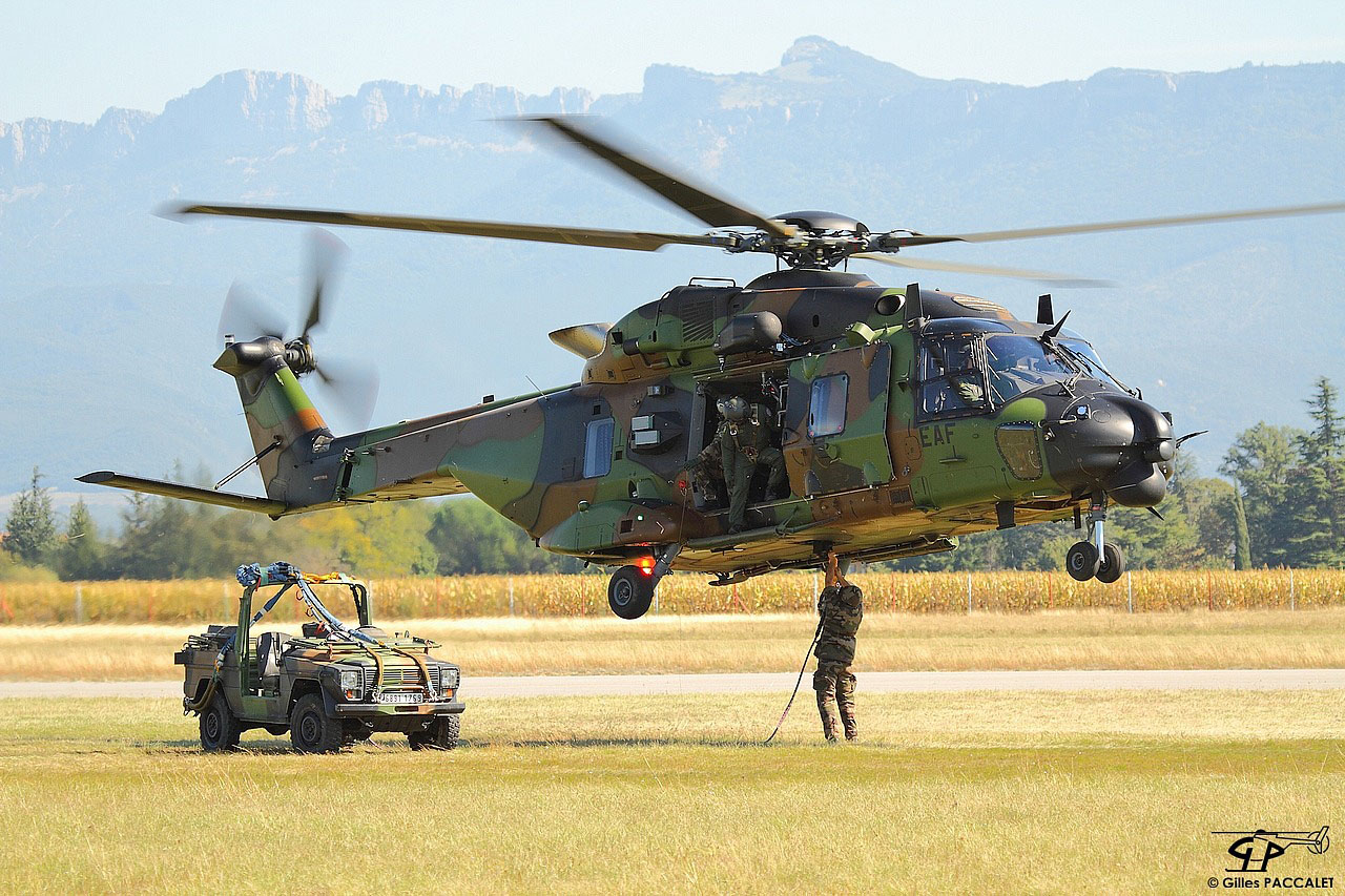 - Le NH90 effectuera une prestation avec l'héliportage d'un véhicule de type Peugeot P4