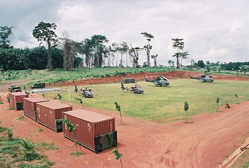 Base ALAT à Duékoué dans l'ouest de la Côte d'Ivoire, près de la frontière avec le Libéria