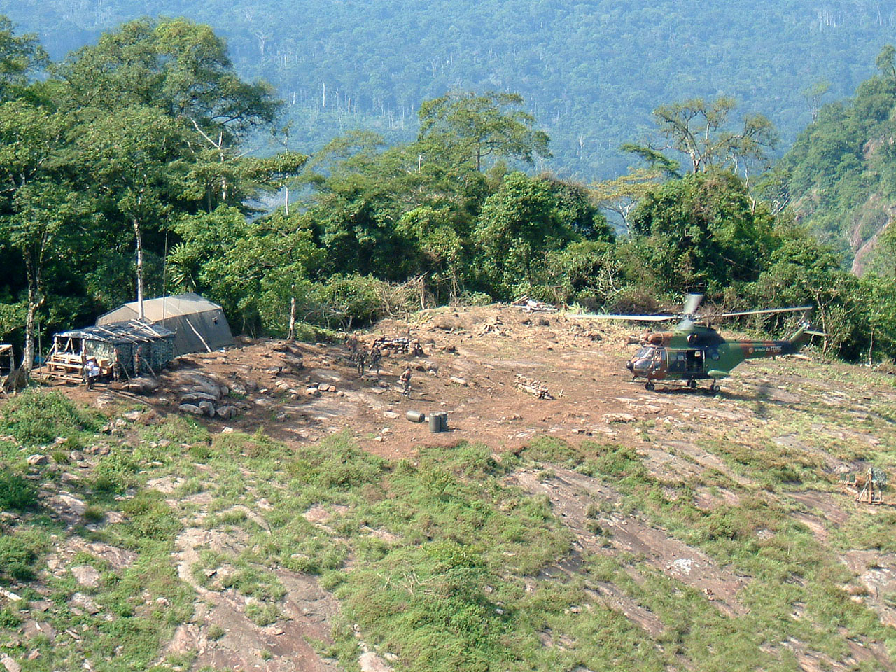 Un hélicoptère Puma ravitaille un relai radio positionné sur une montagne isolée. Aucune route ne mène à ce point haut, l'hélicoptère est le seul moyen de ravitailler en nourriture, carburant et eau. Durant la saison des pluies, le mauvais temps ne rend pas la chose facile car le relai est complètement noyé dans les nuages
