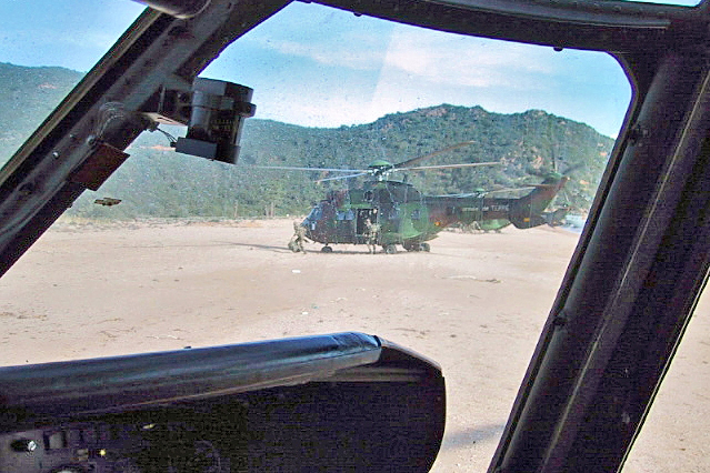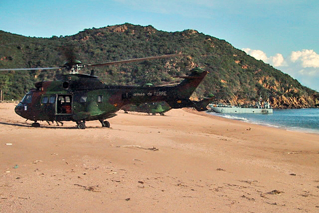 Les images présentées ici ont été réalisées par l’ADC Bernard Accard, pilote de Cougar dans l’ALAT, lors de l’entraînement de jour en Corse, avant le débarquement réel de nuit au sud de Perpignan.