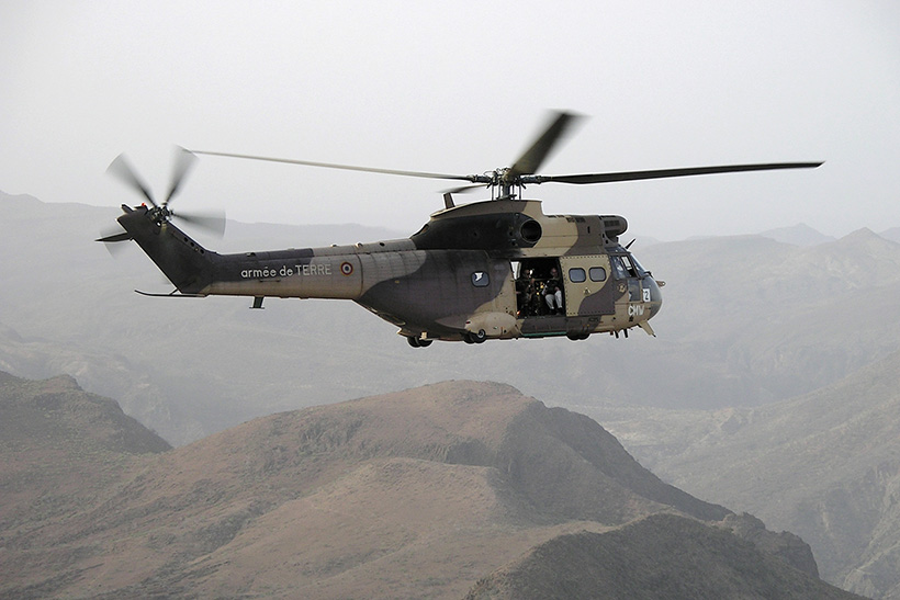 Descente en corde lisse à partir d'un hélicoptère SA330 Puma