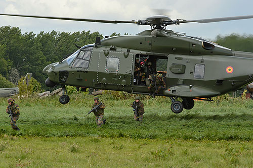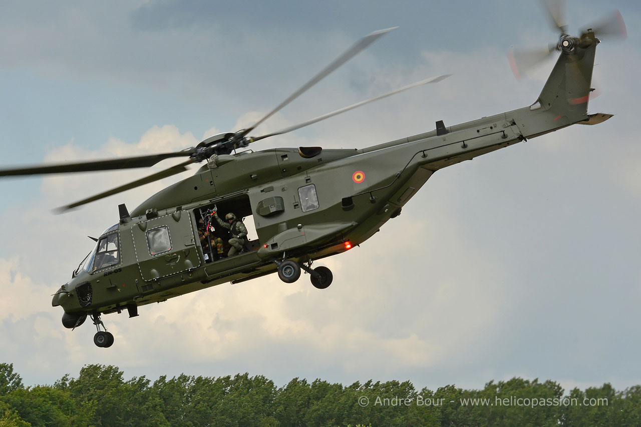 Envol du NH90 MTH RN-06. Notez le système de flottaison, en blanc