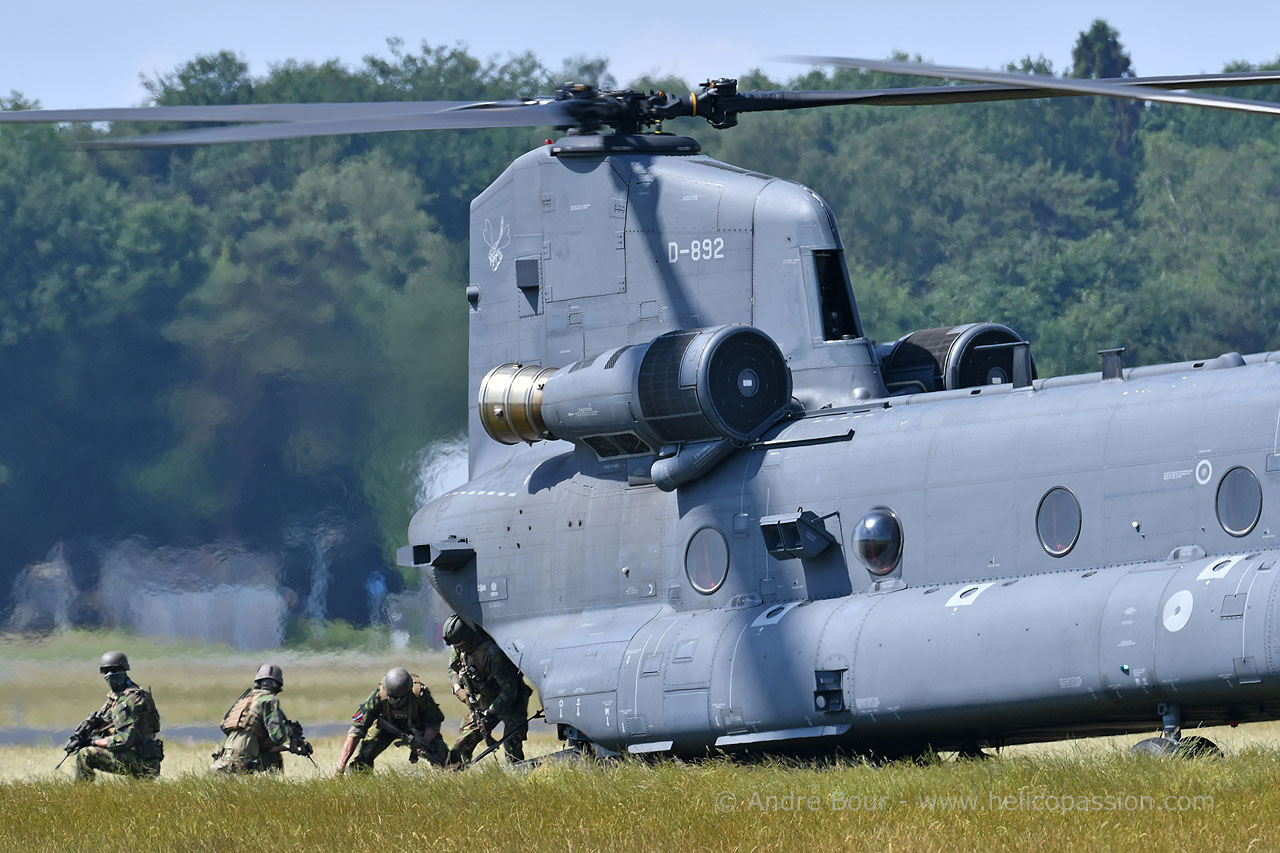 Arrivée d'un hélicoptère CH47 Chinook sur la zone de récupération
