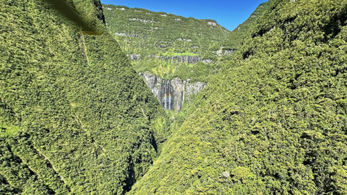 Vol en hélicoptère porte ouverte au-dessus des cascades de Takamaka et de la nouvelle route du littoral, à l'île de la Réunion avec HELILAGON, le 19 mai 2025