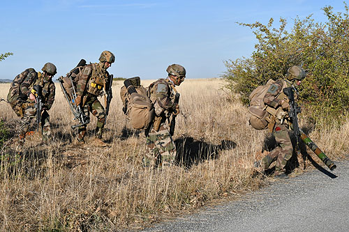 Une section du 1er RHP se met en position avant l'arrivée des hélicoptères