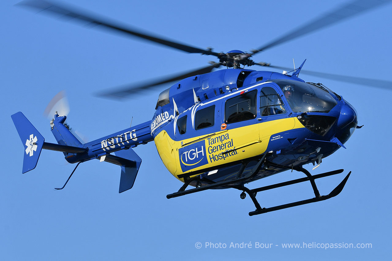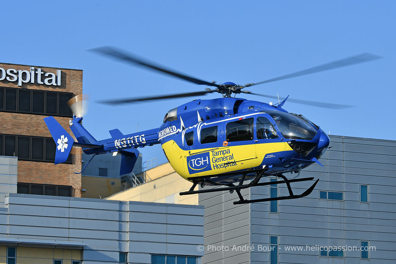 Tampa General Hospital (TGH) dispose de 6 hélicoptère d'évacuation médicale Airbus EC145 et Bell 407, opérés par Metro Aviation depuis 2013. Un des EC145 est basé en permanence à l'héliport de l'hôpital d'où sont prises les photos de cet article.