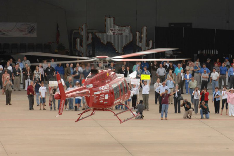 Arrivée à Fort Worth, devant l'usine de Bell Helicopter