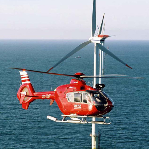 Maintenance du par éolien en mer "Greater Gabbard" au Royaume-Uni par un hélicoptère H135 de BOND AIR SERVICES