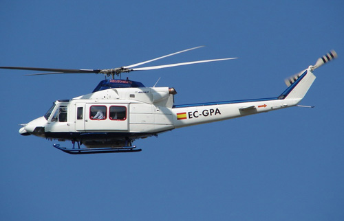 Hélicoptère B412 d'INAER / HELISURESTE en vol sur la ligne régulière Malaga - Ceuta