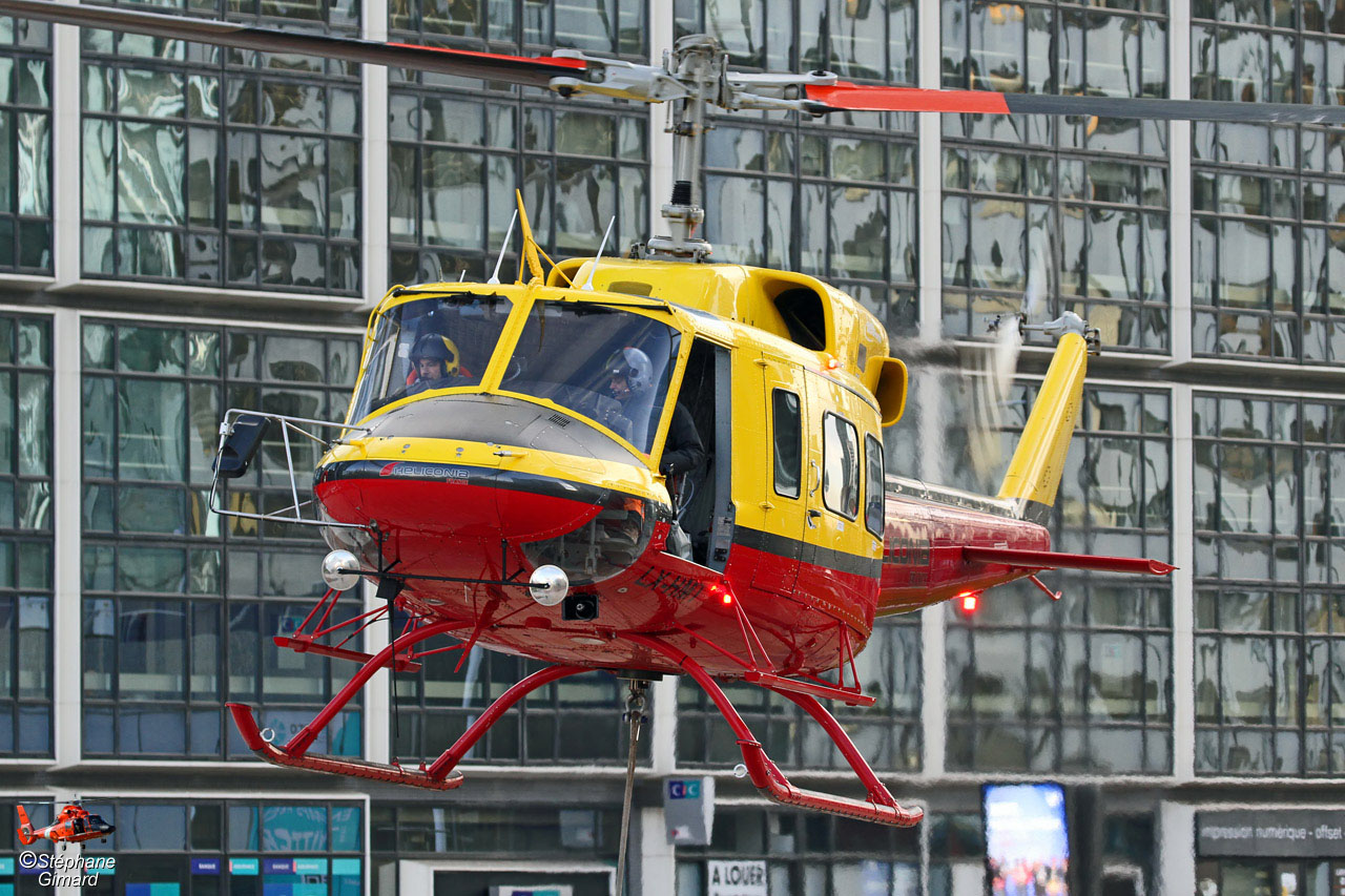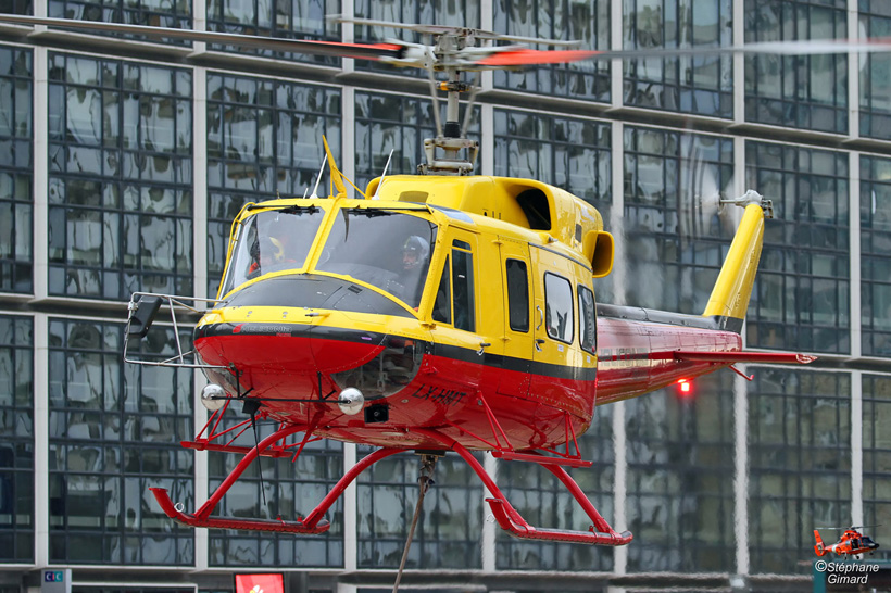 C'était très impressionant, car l'espace de manoeuvre de l'hélicoptère était très confiné entre 4 tours. Et le bruit du Bell 212 rappelait les films sur la guerre du Viet-Nam !