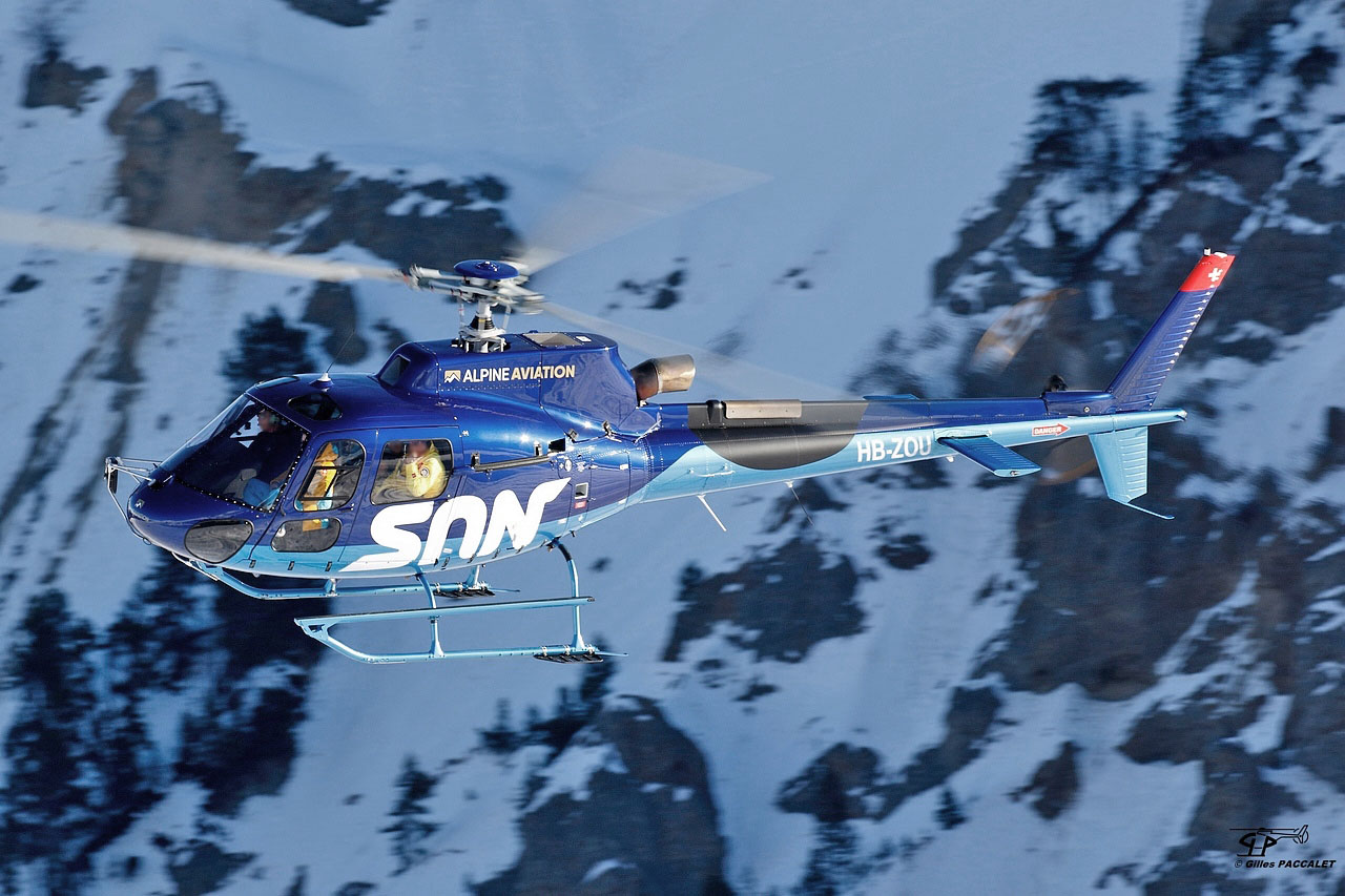(Photo Gilles PACCALET) Hélicoptère AS350 B3 Ecureuil HB-ZOU d'Alpine Aviation