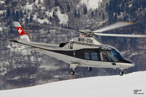 (Photo Gilles PACCALET) Hélicoptère AW109 HB-ZQE de SWIFT COPTERS avec une nouvelle livrée (disparition du filet bleu clair inférieur)