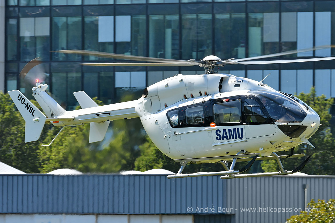 Hélicoptère EC145 OO-NSL du SAMU 62 d'Arras, opéré par NHV, avec une décoration vraiment minimaliste...