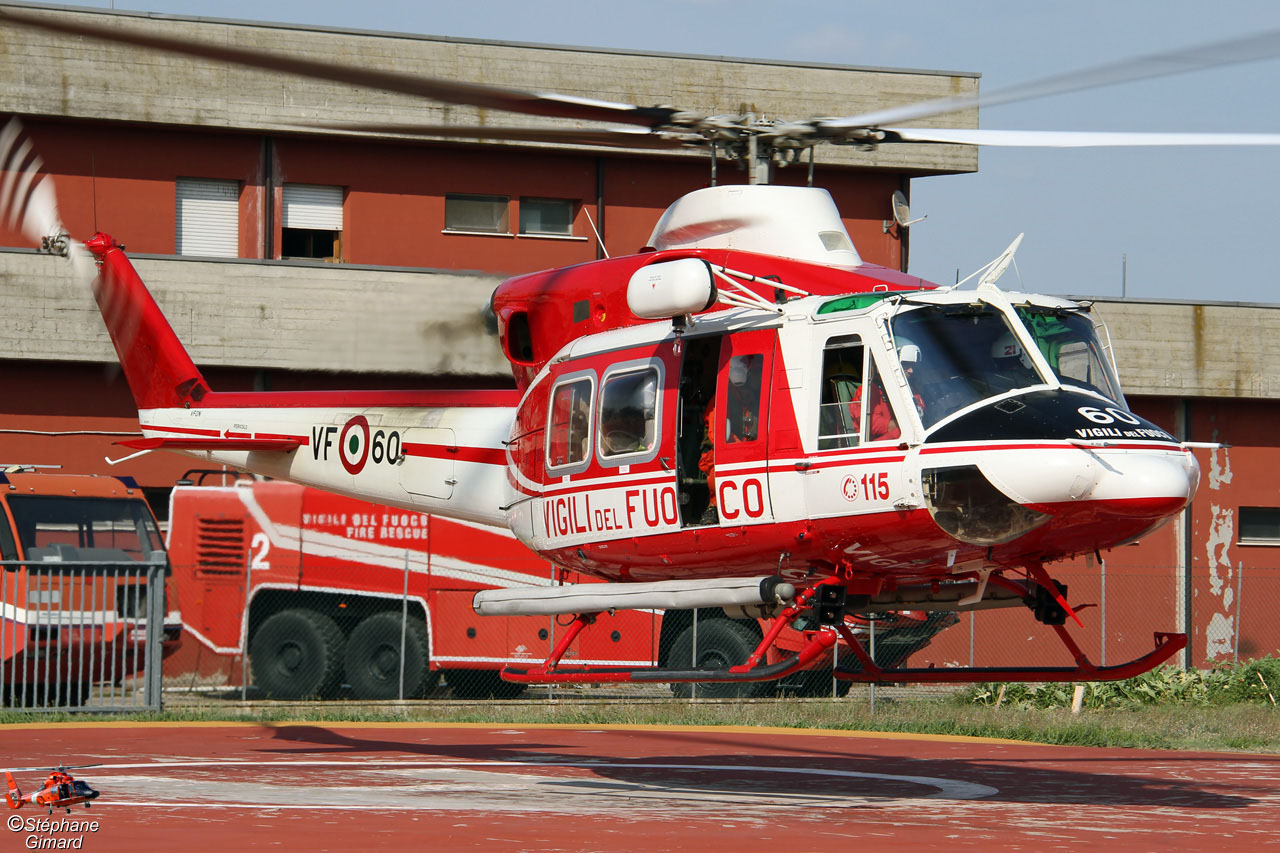 Le service aérien des pompiers de Bologne opère actuellement deux hélicoptères : l'AB412 "Drago" photographié ici, et l'AW139 "Drago 143" présenté dans un article précédent.